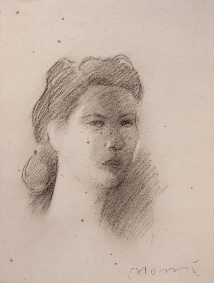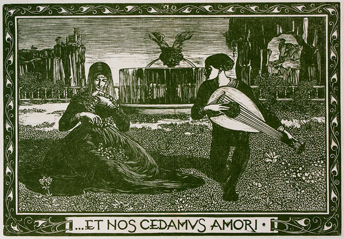 1) ... et nos cedamus amori. 1911. Xilografia in verde. mm 160x235. Foglio: mm 250x380. Da L'Eroica, n. 3 settembre 1911. Dirani, n. 32. 2) Volto femminile. Matita nera su carta. mm 235x180. Firmato in basso a destra. (2)