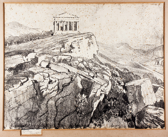 Joseph Pennell, Lotto di due litografie.1) Partenone. mm 410x550....