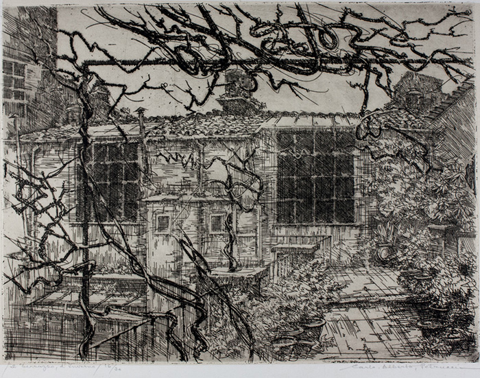Carlo Alberto Petrucci, Lotto composto di 2 incisioni.1) Il terrazzo...