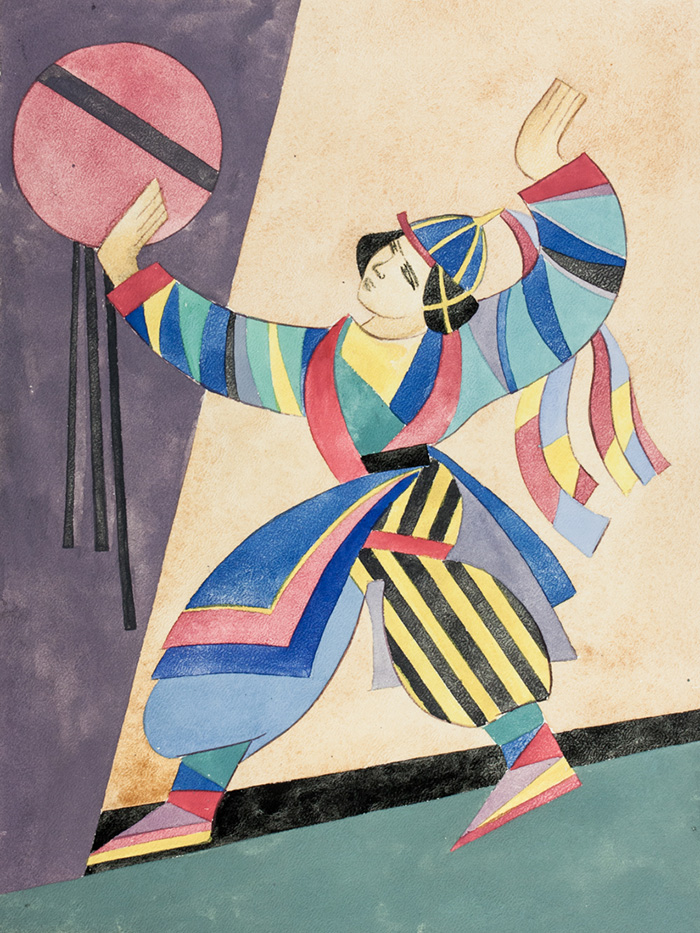 1) Danzatore giapponese. Acquerello su carta. mm 305x270. 2) Figura in divisa. Acquerello su carta. mm 290x185. (2)
