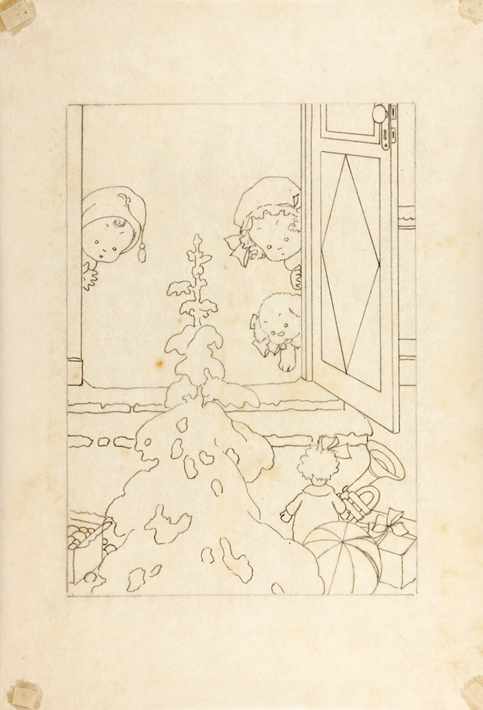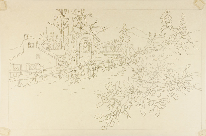 Matita di grafite su carta velina. mm 170/210x70/320. Raffiguranti fantasie con bambini, animali, paesaggi, etc. (11)