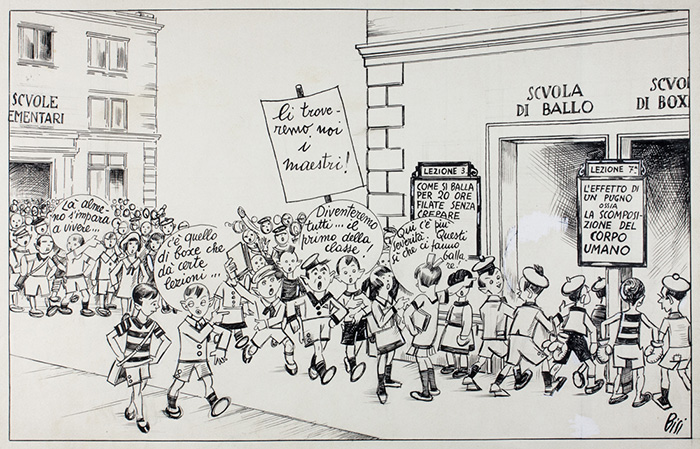 Lotto 462 | Carlo Bisi, Sciopero della scuola.1920China su carta. mm 270x410....