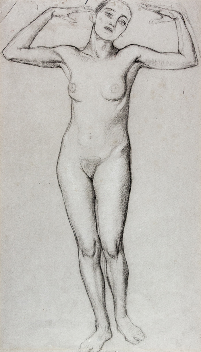 Luigi Bonazza, Studio di nudo femminile.1920 ca.Matita, carboncino e...