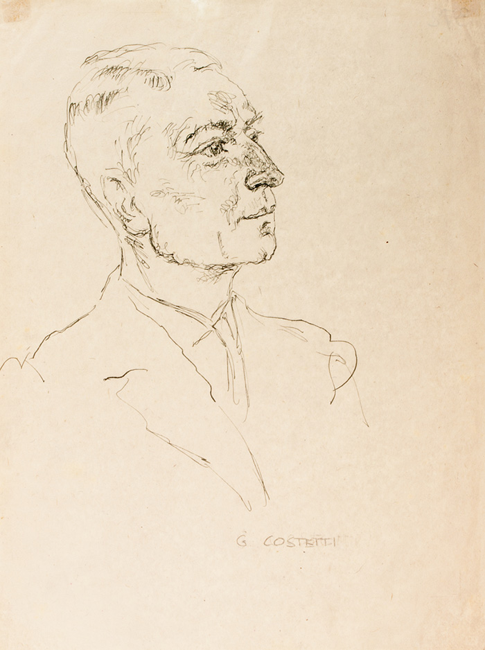 Giovanni Costetti, Ritratto maschile. Penna e inchiostro di china su...
