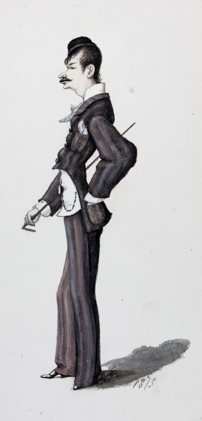 Melchiorre Delfico, Caricatura di uomo con bastone.1875Tempera e...