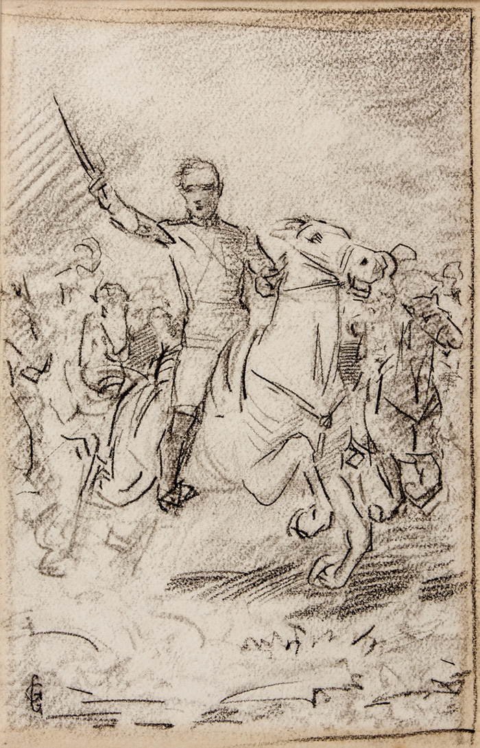 Giuseppe Grassis, Lotto composto di 2 disegni. 1) Generale a cavallo....