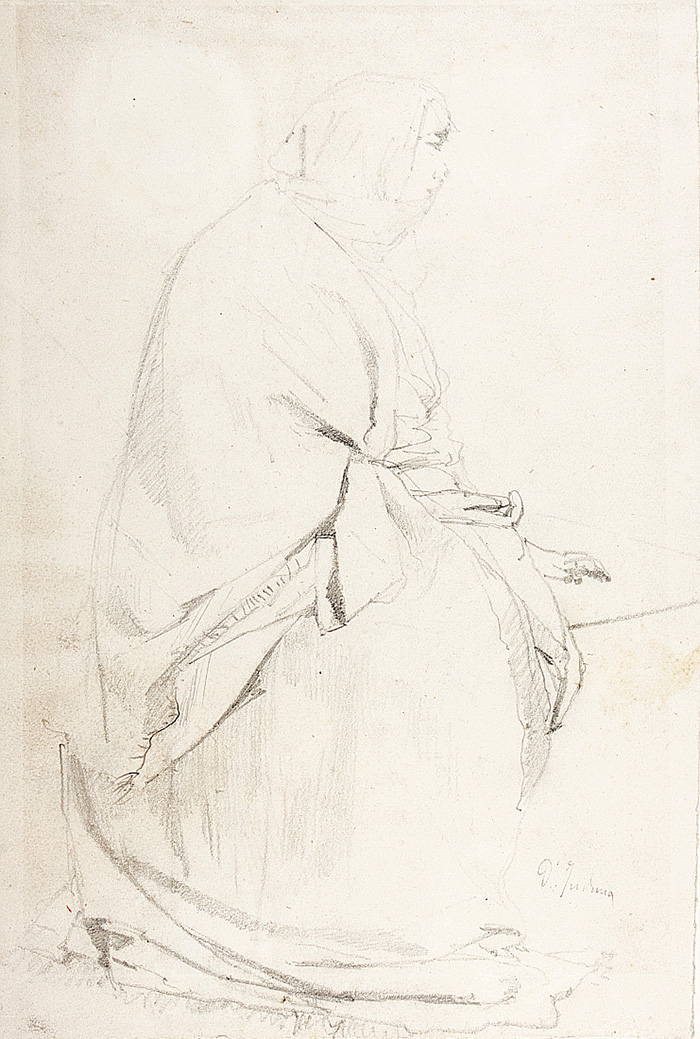 Domenico Induno, Figura femminile seduta.Matita di grafite su carta. mm...