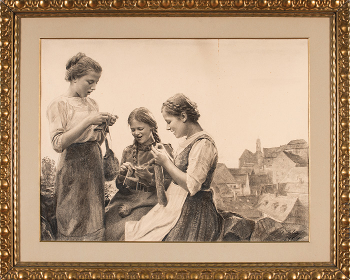 Matita, carboncino e biacca su carta. mm 620x810. Firmato e datato in basso a destra “G. Jahn / 1914”. Nuovamente firmato, datato e titolato sul verso “Abendlied”. Georg Jahn studiò presso le Accademie di Dresda e di Weimar; fu poi attivo come pittore di ceramiche a Meissen quindi, come incisore, illustratore e ritrattista, a Berlino, Lipsia e Monaco. Fu membro della Secessione di Dresda. Disegno di bella qualità, eseguito nel 1914 e pubblicato nella monografia del discendente dell’artista Hans-Georg Jahn, Georg Jahn. Rezeption und Wirkung auf die Renaissance der künstlerischen Graphik in Dresden um 1900, Wiesenbach b. Heidelberg 2008.