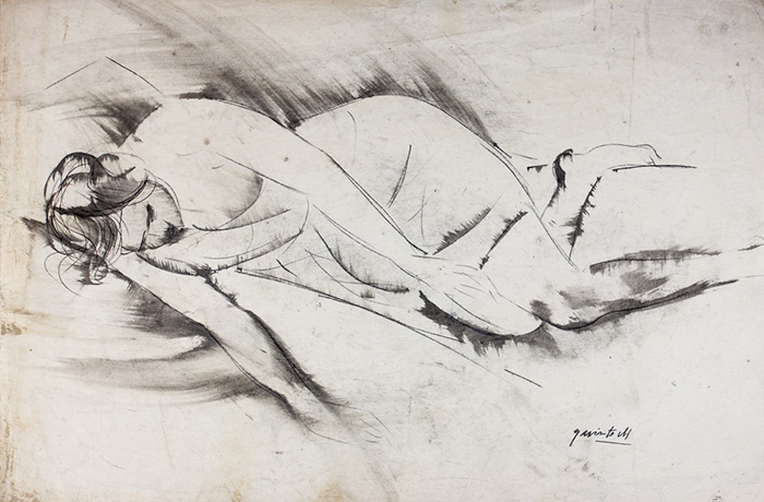 Quinto Martini, Figura femminile sdraiata. Penna e inchiostro su carta....