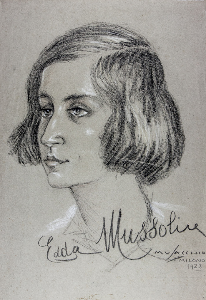 Cesare Annibale Musacchio, Edda Mussolini.1923Matita nera con rialzi a...