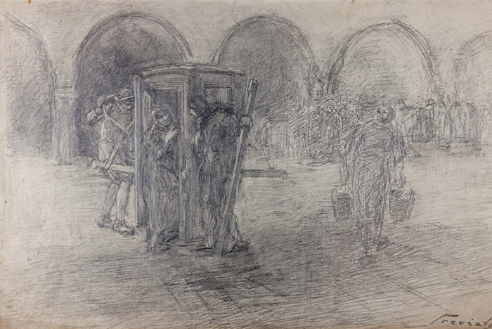 Matita di grafite su carta. mm 460x310. Firmato in basso a destra. Illustrazione originale per I promessi sposi (edizione Hoepli, Milano, 1900).