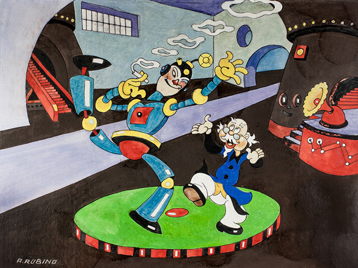 Lotto 599 | Antonio Rubino, Inventore e automa con sigaretta.Tempera su cartone. mm...