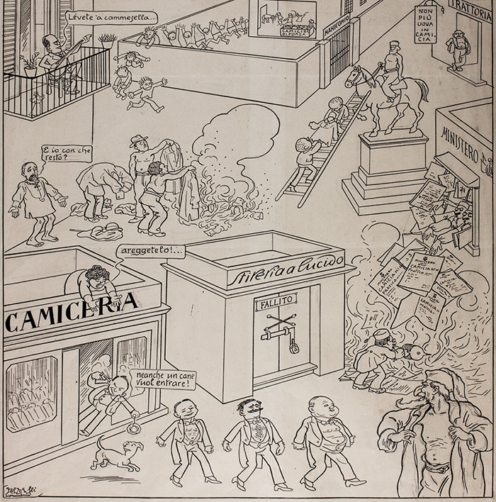 Filiberto Scarpelli, Camiceria.Penna su carta. mm 350x340. Firmato in...