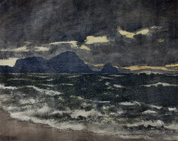 Acquerello su carta. mm 230x290. Firmato in basso a destra. Al verso titolato e datato "19. X. 1910".