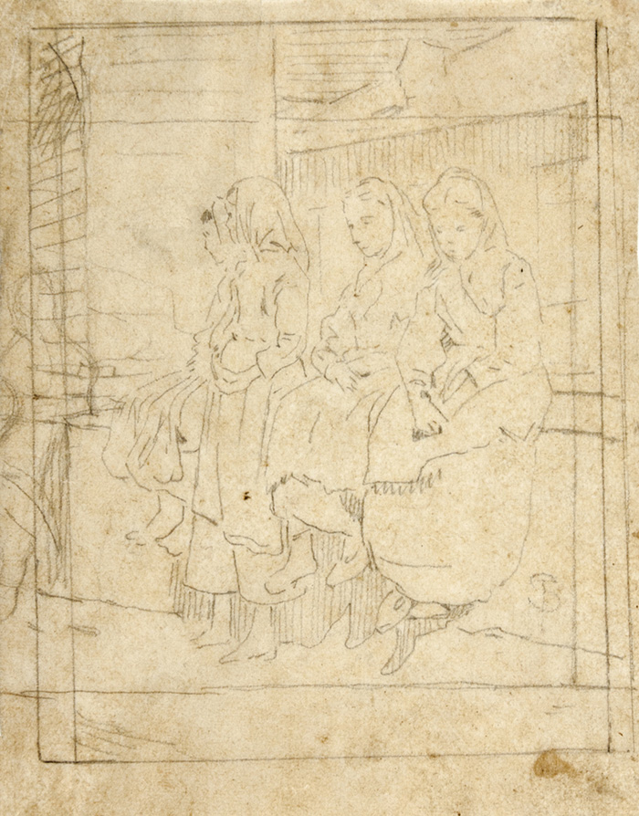 Telemaco Signorini, Quattro contadine sedute. Matita di grafite su carta...