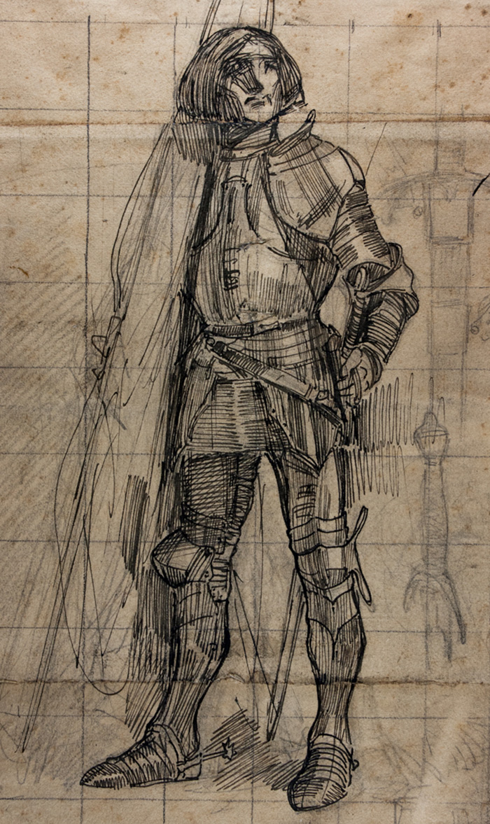 Stefano Ussi [attribuito a], Armigero.Penna e inchiostro di china...