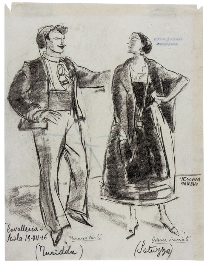 Mario Vellani Marchi, Lotto composto di 2 disegni con figurini per Cavalleria Rusticana.