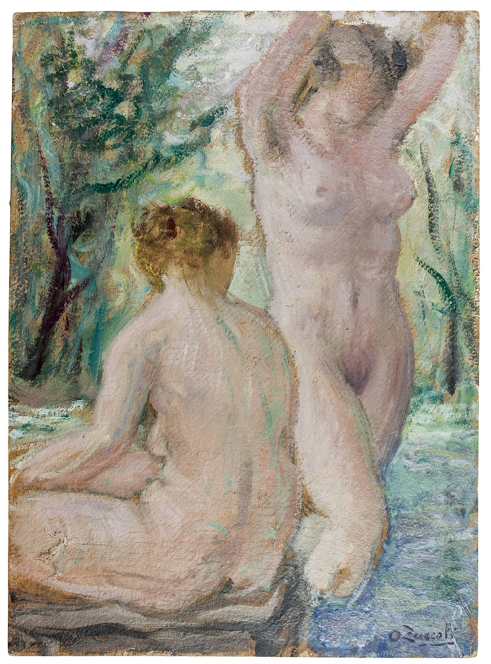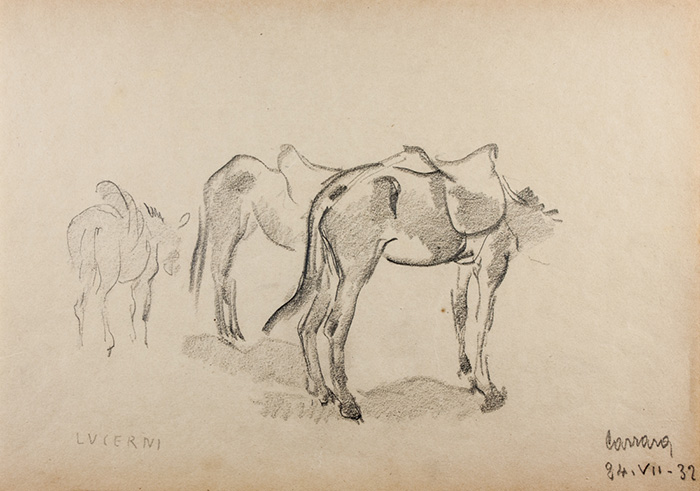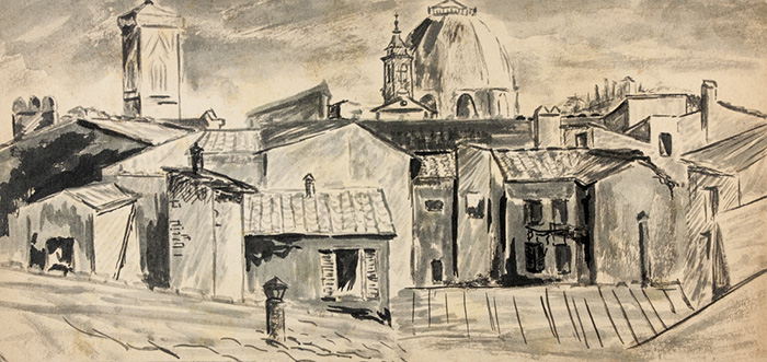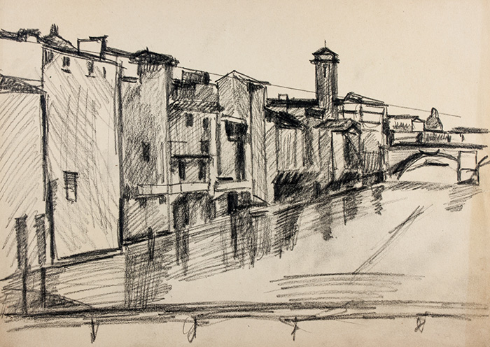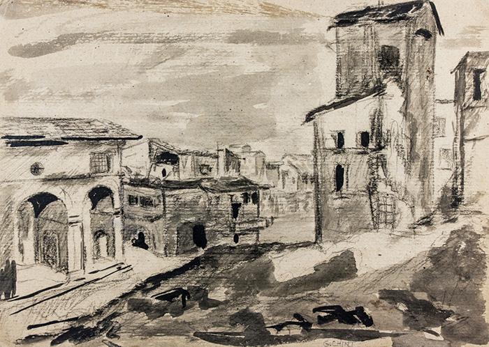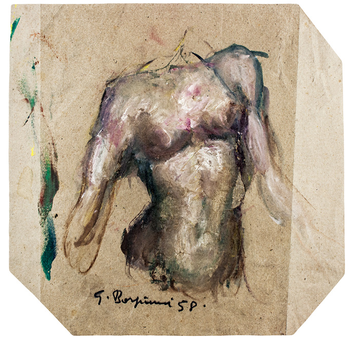 1) Bagnanti. Olio su cartone. cm 40x29. Firmato in basso a destra. 2) Guido Borgianni, Busto femminile. 1958. Tempera su carta. Firmato e datato in basso. 3) Krimer (pseud. di Cristoforo Mercati), Fantasia. 1958. Monotipo (?). Firmato e datato in basso ai lati a matita. 4) Ugo Lucerni, Asini. 1932. Matita nera su carta. Firmato e datato "Carrara 24 VII - 32". 5) V. Berti, Scorcio di Firenze. Acquerello e inchiostro su cartoncino. Annotato al verso "V. Berti 46". 6) Galileo Chini (?), Firenze bombardata. Inchiostro e matita su cartoncino. Reca la scritta a matita "G. Chini". 7) Giuseppe Viner (?), Volto femminile. Matita nera su carta. Annotato al verso a matita "Viner". 8) Eldo Maffi, Fabbrica. Penna e acquerello su carta. 9) Anonimo del XX secolo, Case sull'Arno. Matita nera su carta. (9)