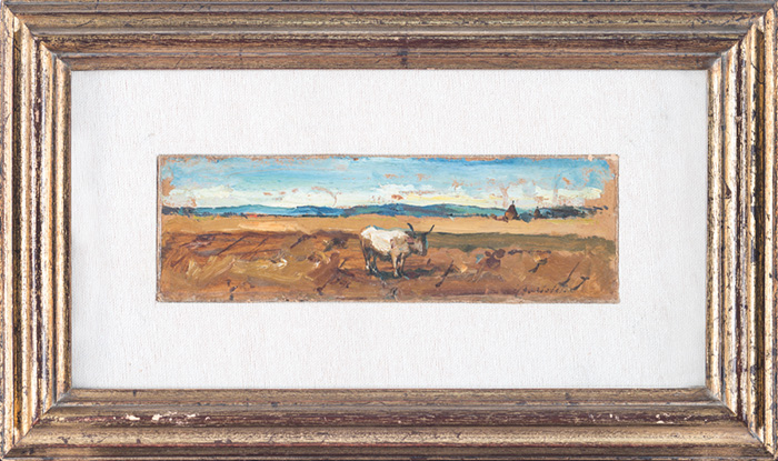 Giovanni Bartolena, Vitello a Campolecciano.1925 ca.Olio su cartone. cm...