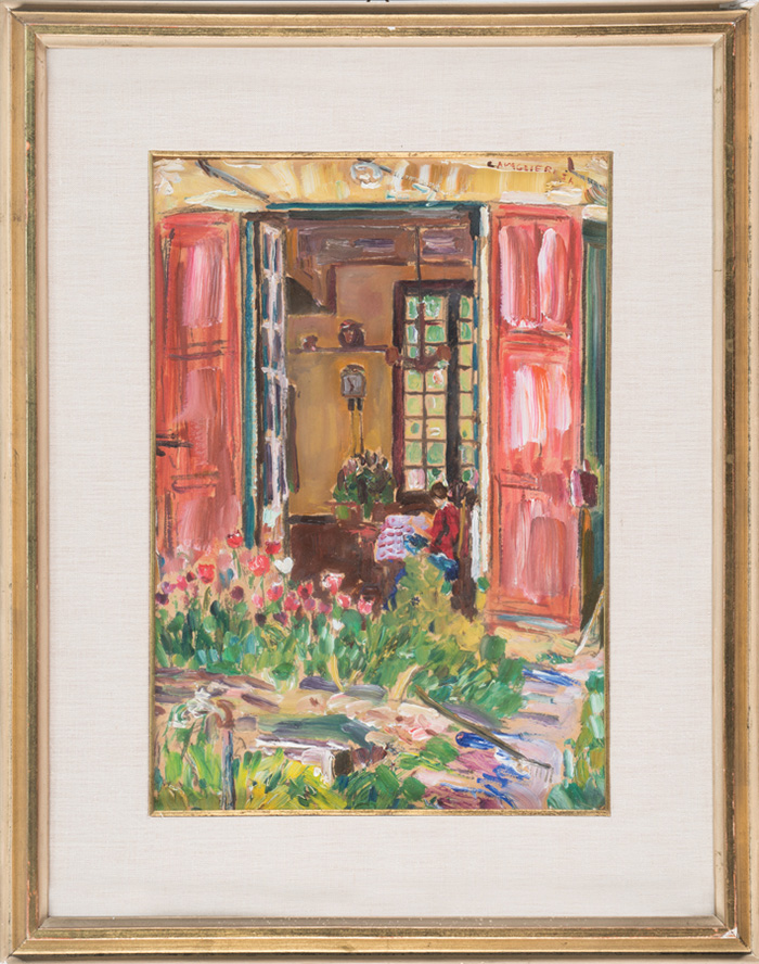 Mario Cavaglieri, Scena d'interno vista da giardino.1954 Olio su...