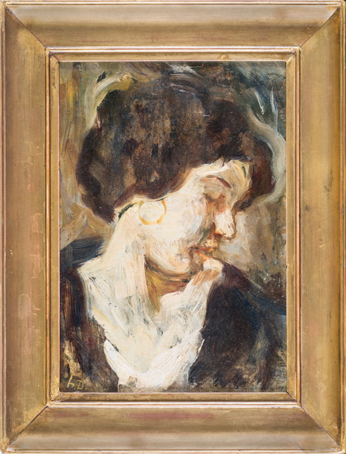 Olio su cartone. cm 30x20,9. Firmato in basso a sinistra "h. D.". Il dipinto è ascrivibile con buone probabilità all’artista per la firma, la condotta pittorica e la qualità.