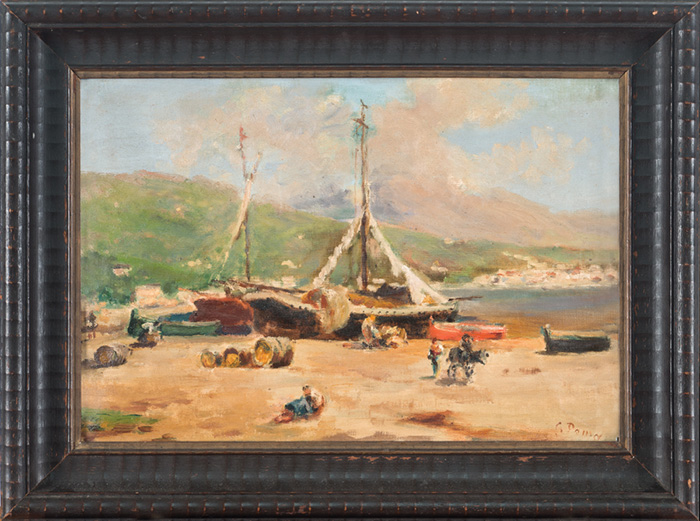 Silvio Poma, Barche a riva.Olio su tela. cm 32x47. Firmato...