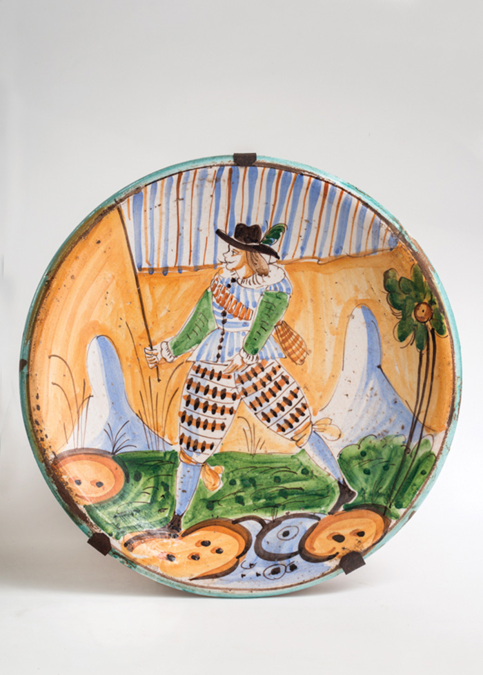 Manifattura di Montelupo, Piatto con portabandiera.XIX secolo.Maiolica...