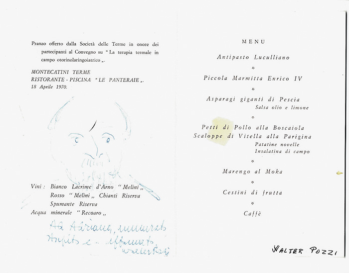 Tra i nomi: Iorio Vivarelli, Silvio Loffredo (con disegno), Renato Guttuso (con disegno), Simone Mounier (con disegno), Marino Marini, Giuseppe Cesetti, Pietro Annigoni, Walter Pozzi, Gabriele Hansen (con disegno), Ignasi Vidal, Ely Bielutin, Claudio Verna, Ugo Velluto (con disegno), Danièle Delorme, Jean Paul Vignon ecc. Tre menù sono del ristorante "Voisin".