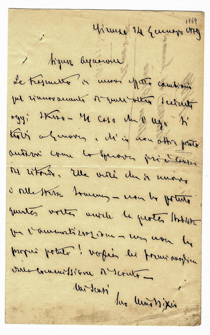 Bixio Nino, Lettera autografa firmata. Datata 24 gennaio...