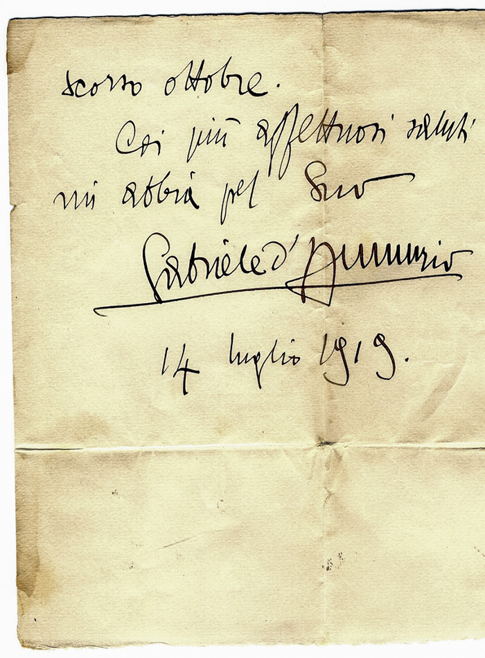 D'Annunzio Gabriele, Lettera autografa firmata inviata ad un generale.