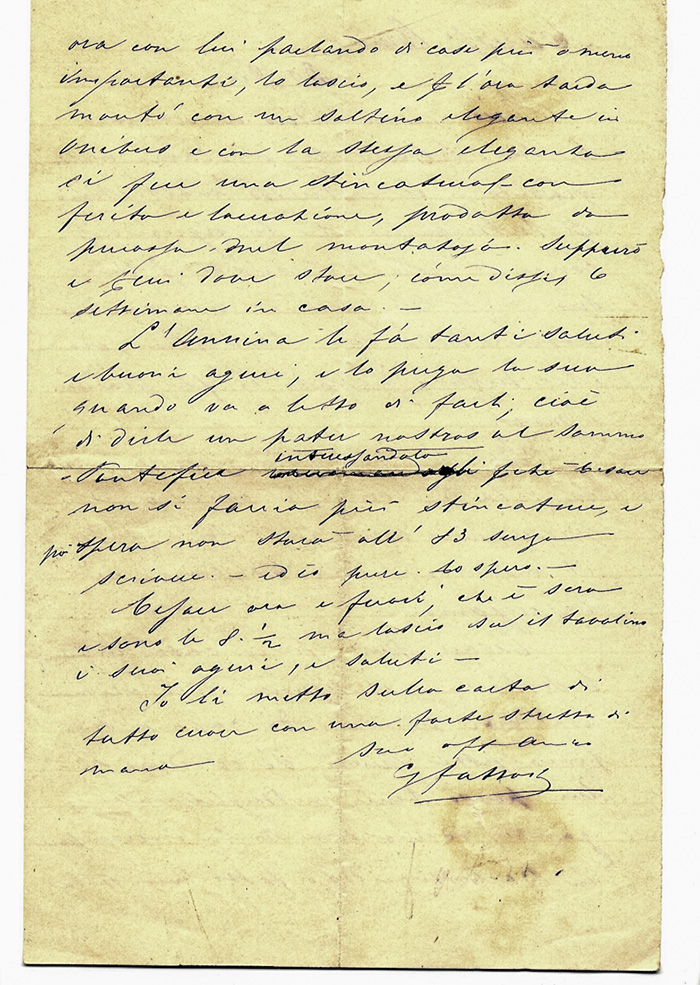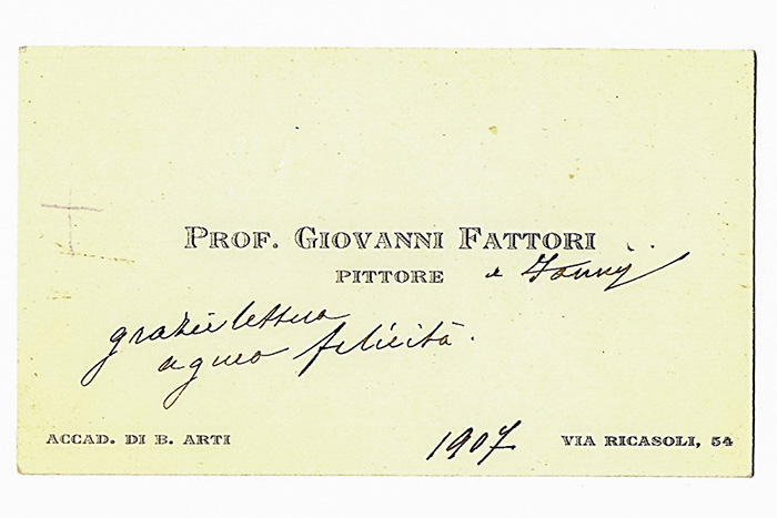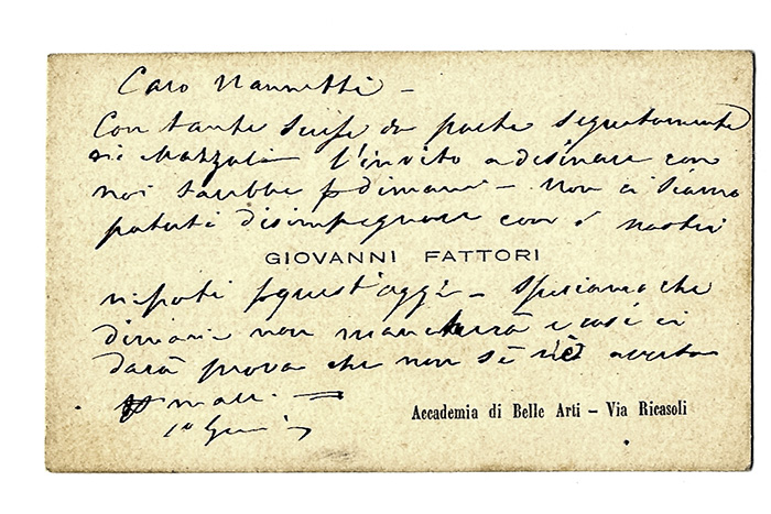 Fattori Giovanni, Lettera autografa firmata inviata all’artista Vieri Nannetti, pronipote di Fattori.