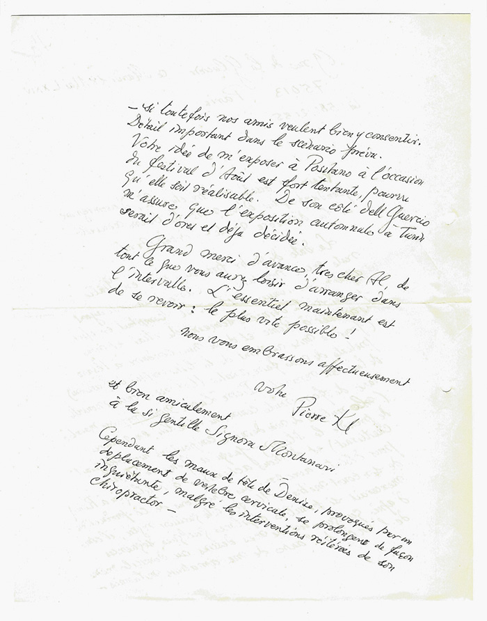 Klossowski Pierre, Lettera autografa firmata.
