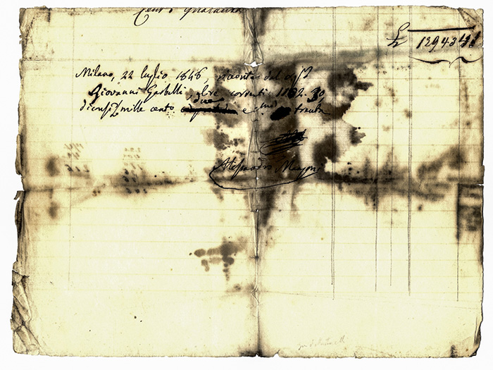 "[...] Ricevuto dal Sig. Giovanni Garbelli, lire correnti 1102,30 [...]".