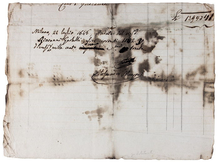 Manzoni Alessandro, Ricevuta autografa firmata.