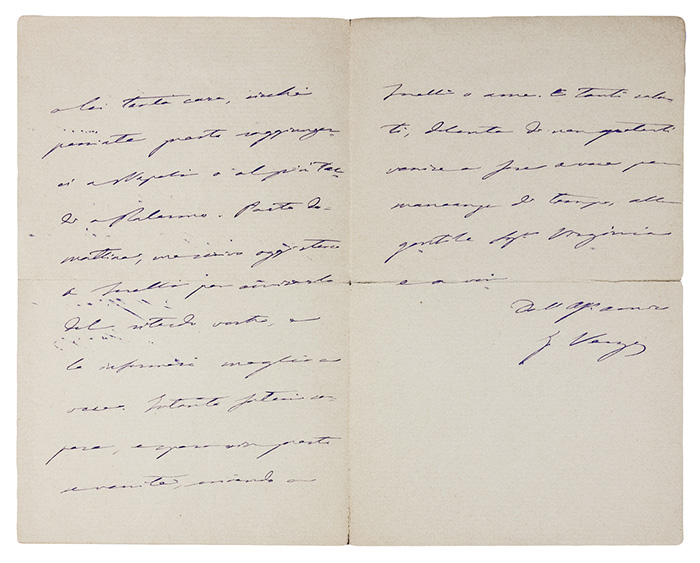 Verga Giovanni, Lettera autografa firmata inviata a un amico.