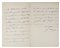 Manoscritto a inchiostro blu. 1 bifolio, scritte 3 pagine. Un breve strappo alla piegatura della carta. Dimensioni 180x115 mm.