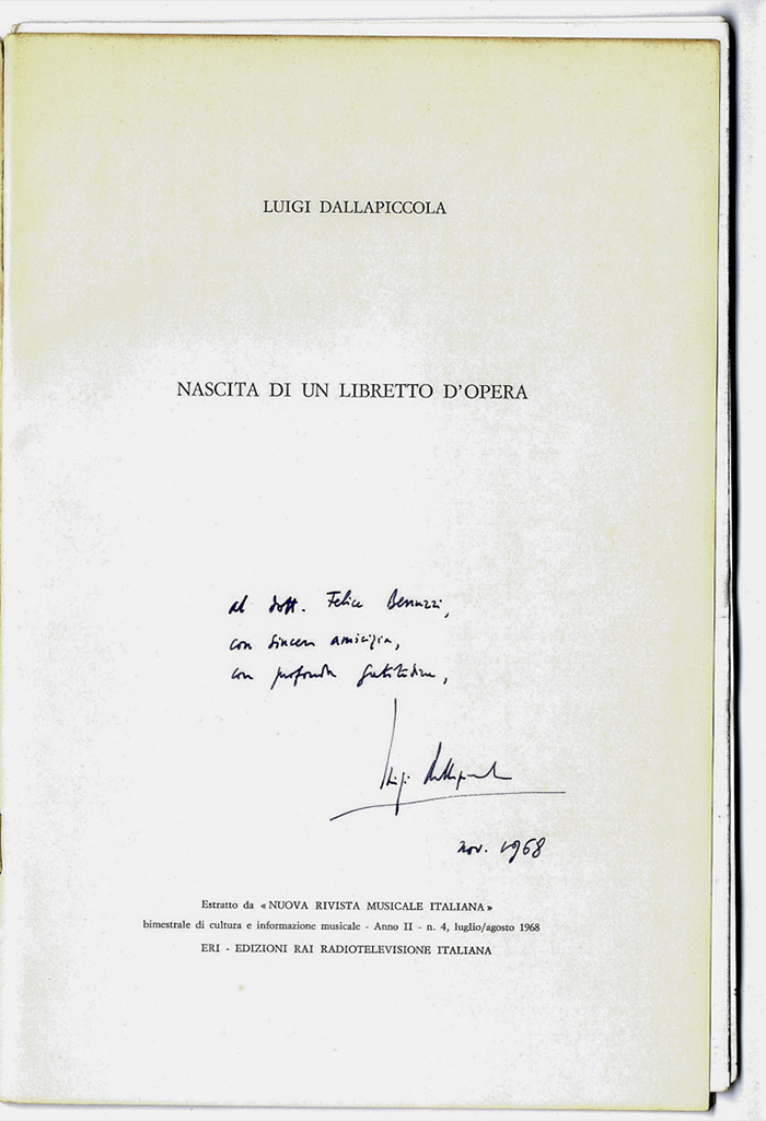Dallapiccola Luigi, Dediche e firme autografe su libri.