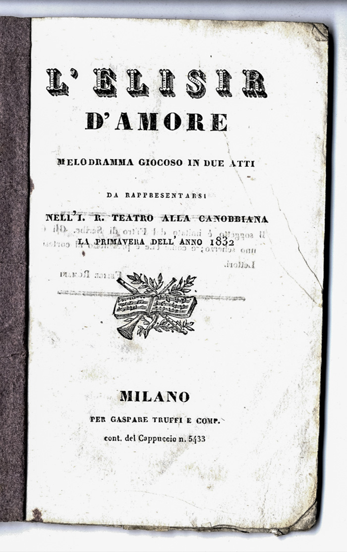Donizetti Gaetano, L'elisire d'amore.Milano, Truffi 1832.In 12°...