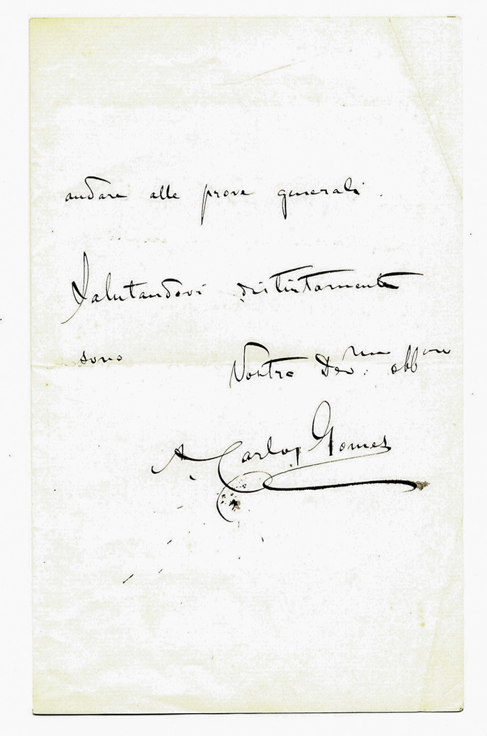Gomes Carlo Antonio, Lettera autografa firmata inviata al marchese...