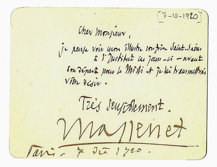 Massenet Jules, 1 lettera e 1 biglietto, autografi firmati.