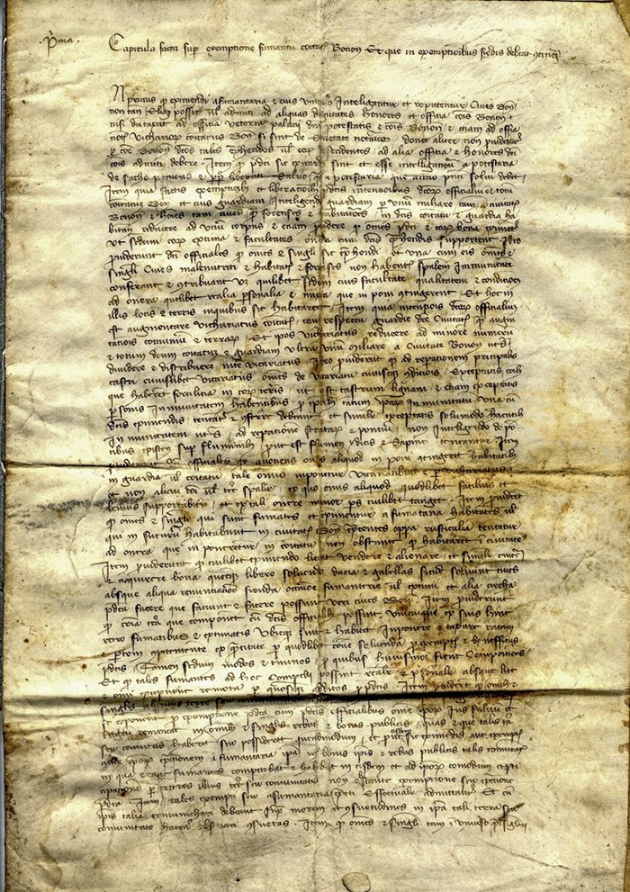 Capitula facta super fumetariae communitatis Bononiae...Datato 5 luglio 1415...