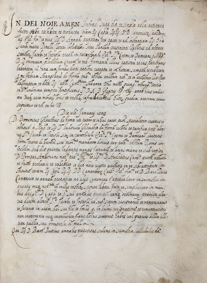 [Atti del Capitolo della Cattedrale di Fermo. Famiglia Gigliucci. Giuspatronato dell'Altare dei Santi Jacopo e Giuseppe nella Chiesa dei santi Cosma e Damiano].