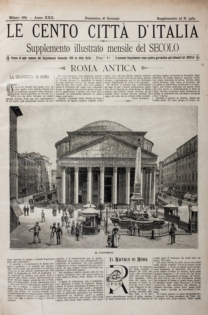 16 annate in 2 volumi in-folio massimo (mm 430x300). 192 fascicoli di 8 pagine ciascuno, dal supplemento del 16 gennaio 1887 (Anno XXII) a quello del 31 dicembre 1902 (anno XXXVII). Moltissime xilografie di dimensioni varie nel testo con vedute di città italiane, con i loro monumenti e beni artistici. Buone condizioni generali. Legatura moderna in mezza pergamena con titoli impressi in nero al dorso. (2)