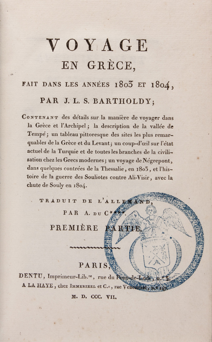 Bartholdy Jacob Ludwig Salomo, Voyage en Grèce, fait dans les années 1803 et 1804 [...]. Traduit de l'allemand par A. Du C*. Première partie (-deuxième).