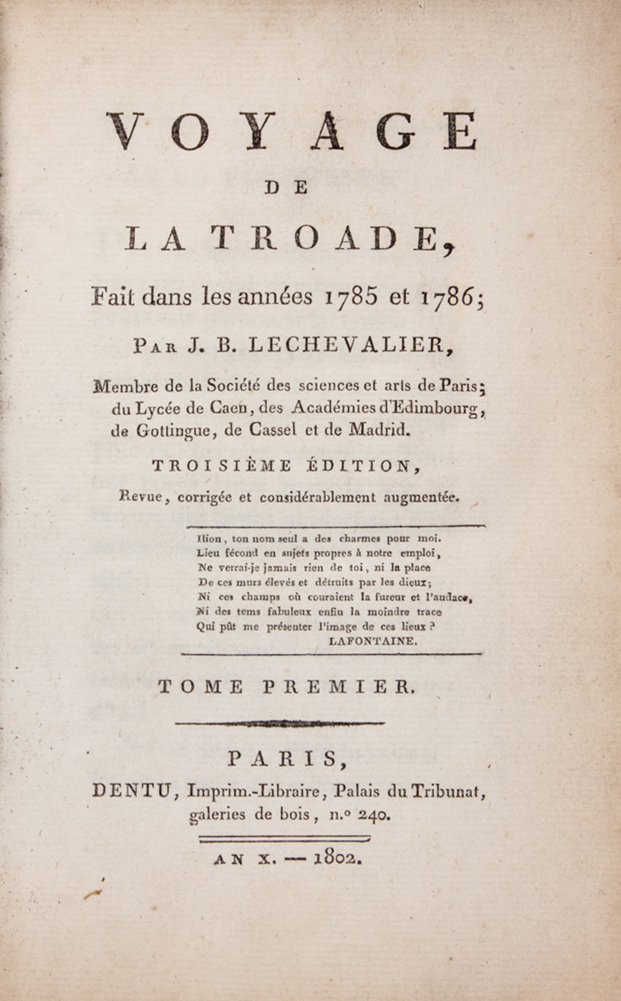 Lechevalier Jean Baptiste, Voyage de la Troade, fait dans les annees...