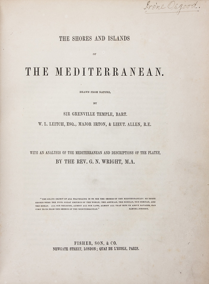 Wright George Newenham, The shores and islands of the mediterranean. Drawn from nature by Sir Grenville Temple, W.L.Leitch, Irton, Allen...