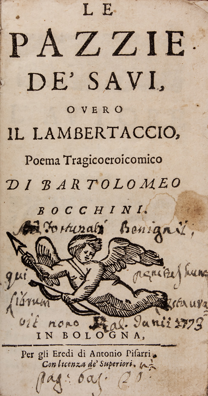 Bocchini Bartolomeo, Le pazzie de' savi, overo il Lambertaccio, Poema tragicoeroicomico.