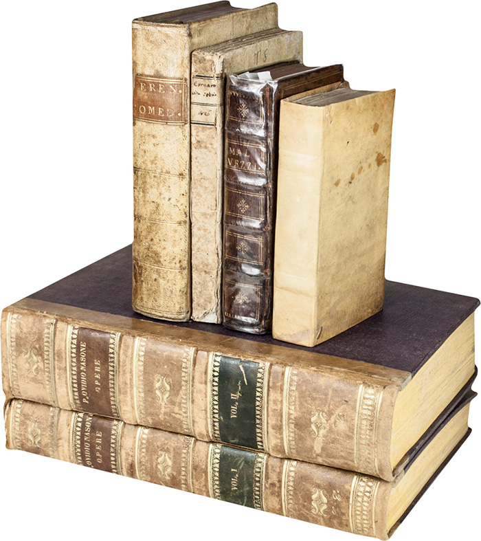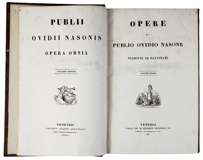 2 parti in 1 volume in-12° (mm 132x70). Pagine 311, [1]; 154, 1 carta bianca. Lievemente ingiallito e con una macchia d'unto marginale in fine. Legatura posteriore in pergamena semirigida. SI AGGIUNGE: Terentius Afer Publius, Le Commedie [...] tradotte in versi sciolti da Niccolò Fortiguerri... Venezia: Simone Occhi, 1748. SI AGGIUNGE: Cornaro Luigi, Discorsi [...] intorno alla vita sobria. Venezia: Tipografia Alvisopoli, 1826. SI AGGIUNGE: Malvezzi Virgilio, Il Romulo... [Segue:] Il Tarquinio Superbo... [Segue:] Davide perseguitato... [Segue:] Il ritratto del privato politico christiano... S.n.t. 4 opere in 1 volume in-12° (mm 142x80). Le prime due hanno l'introduzione del Baba, datata 1635, la terza del Sarzina 1634, ma non è stato possibile individuarne l'edizione. SI AGGIUNGE: Ovidius Naso Publius, Opere... Venezia: Giuseppe Antonelli, 1844, 2 volumi. (6)