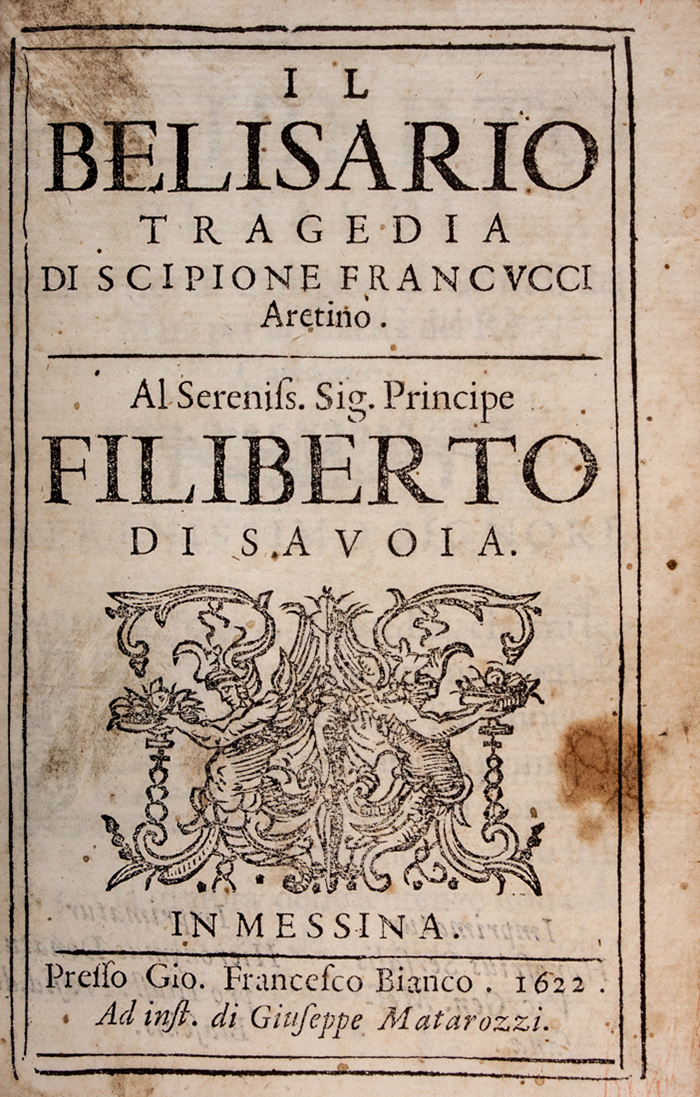 Francucci Scipione, Il Belisario Tragedia.In Messina: presso Gio....