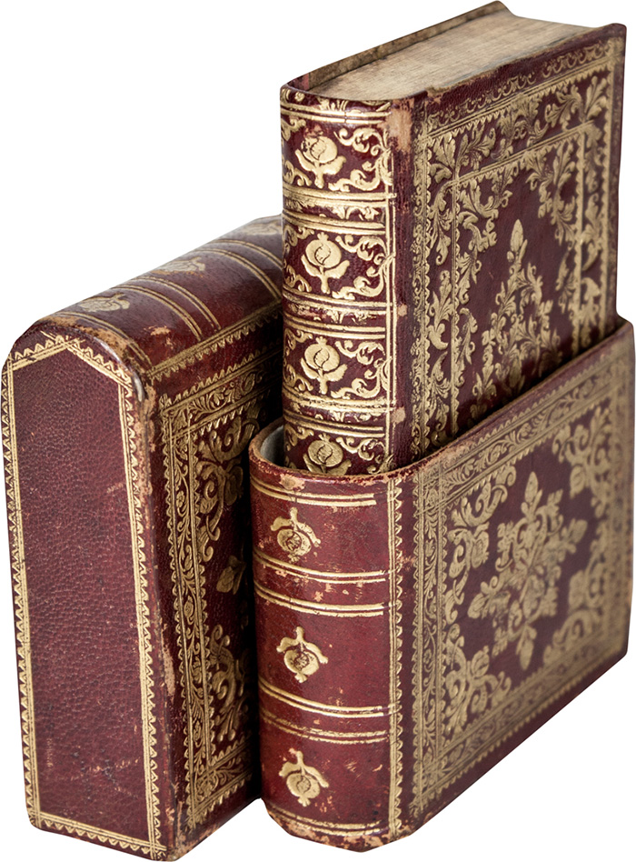 In-16° (mm 122x75). Pagine [40], 427, [5] con 15 bellissime incisioni. Più di 20 finalini nel testo incise da Pitteri sui disegni di Piazzetta. Lieve strappetto al margine di pagina 347. Sguardie in stoffa dorata. Splendida legatura coeva in marocchino rosso con ampie decorazioni floreali in oro. Piatti con filetti e riquadri sempre dorati e dorso a sei nervi. Custodia in cartone ricoperta di seta e con legatura sempre in marocchino rosso con splendide figure. Minime abrasioni ai piatti ed alla custodia. Dedica alla prima carta con firma di Tammaro de Marinis.